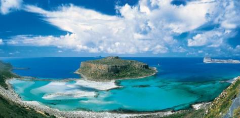 При приближении к острову, видно, что цвет воды у его берегов меняется подобно хамелеону, насчитывая до 14 оттенков. Объясняется это тем, что здесь перемешиваются течения сразу трех морей: Критского, Ионического и Средиземного. Очень красочно. На острове венецианская крепость Грамвуса, «охраняемая» мраморным львом - грифоном. В свое время здесь побывал легендарный и непобедимый пират Барбаросса. После экскурсии по острову, корабль идёт в бухту Балос, где намечено купание и отдых на пляже с красивым морем и белым песком.