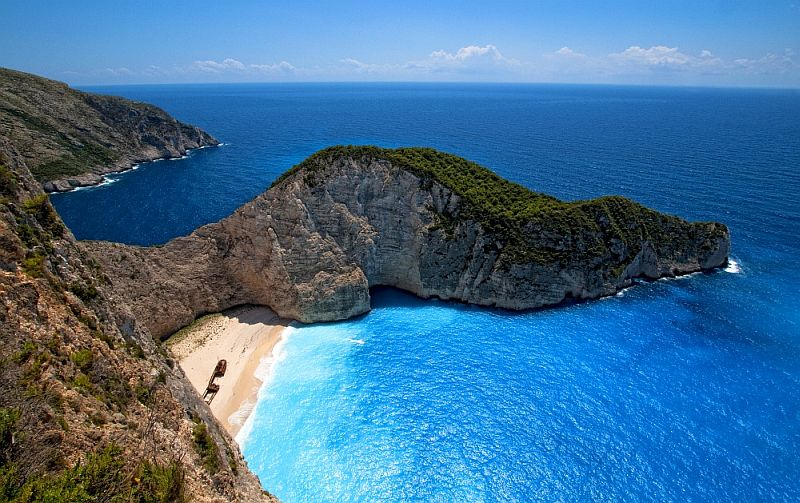 На северо-западном берегу острова Закинф расположена, пожалуй, самая красивая на земле бухта Навайа (Navagio Beach) с одноименным пляжем, где на белом песке любят отдыхать туристы. Добраться до бухты Навайо можно только по морю, так как это сказочное место надежно защищено неприступными известняковыми скалами. Однако те, кто все же решается посетить бухту, никогда не бывают разочарованы. Прекрасный белоснежный пляж, укрытый скалами, так и манит любителей понежиться на солнце, в то время как изумительные голубые воды моря привлекают тех, кто любит поплавать. Стоит отметить, что вода здесь исключительно соленая, а море уже в 5 метрах от берега достаточно глубокое, что впрочем, не мешает многочисленным туристам наслаждаться прохладой и насыщенным цветом волн. Название бухты Навайо с греческого переводится как «кораблекрушение», и это не просто так, в 1983 году недалеко от бухты потерпел крушение контрабандистский корабль «Панайотис», который нелегально перевозил сигареты в Италию. Когда обнаружили нарушителей, они быстро сели на шлюпки и покинули корабль затопив его вместе с товаром. Один раз во время большого шторма корабль «Панайотис» выбросило на берег бухты, где он так и остался и по сей день. Так все туристы отдыхающие в бухте, пишут разные надписи, а также ставят свои афтографы, после чего даный корабль и стал местной достопримечательностью бухты.
